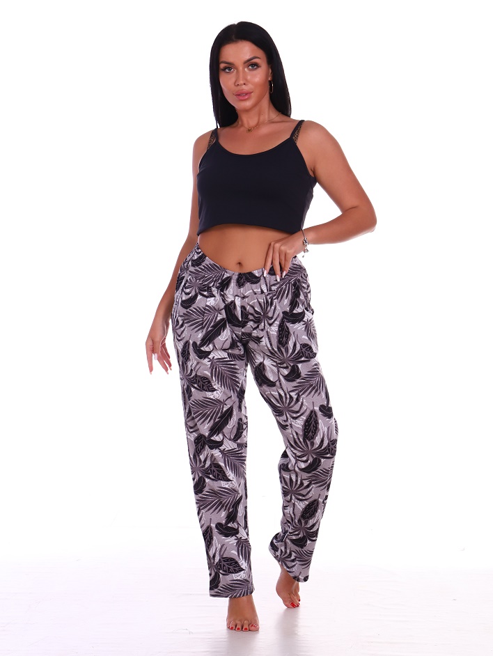 Брюки Шакира кулирка (листья на сером)